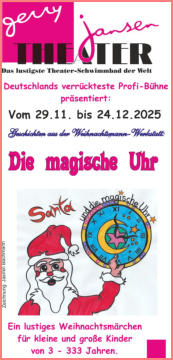 Mi, 31.12.25 (Silvester) um 18.00 h und um 21.00 h