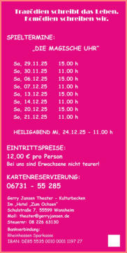 Da die Sonntagvorstellung um 19.00 h vielen unserer Gästen im
